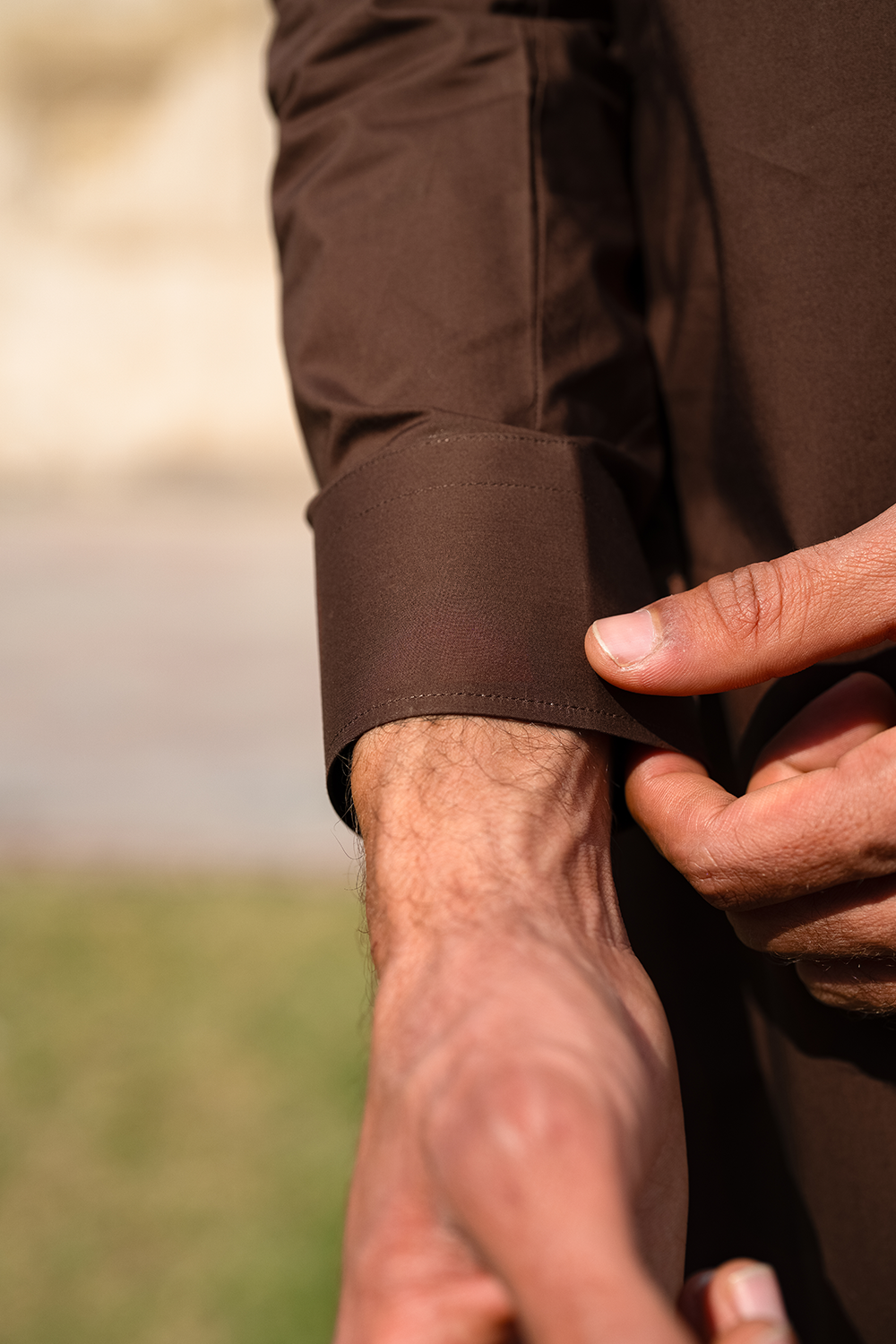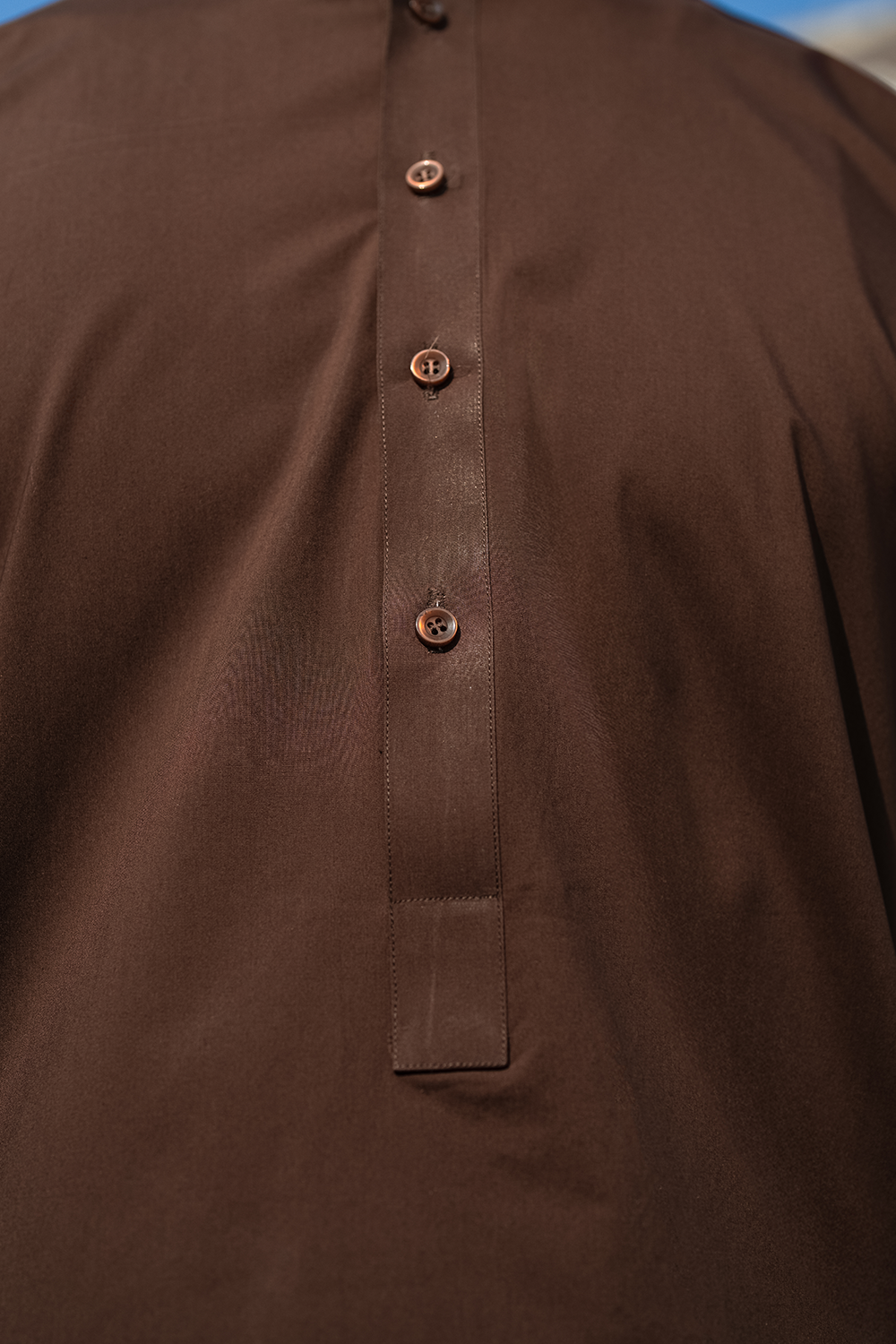 Design: A rich brown shalwar kameez crafted from premium, breathable fabric with a smooth and structured drape. Designed with a clean band collar and subtle button placket, it offers a refined, minimal aesthetic. Paired with a tailored shalwar for a sharp yet effortless look.