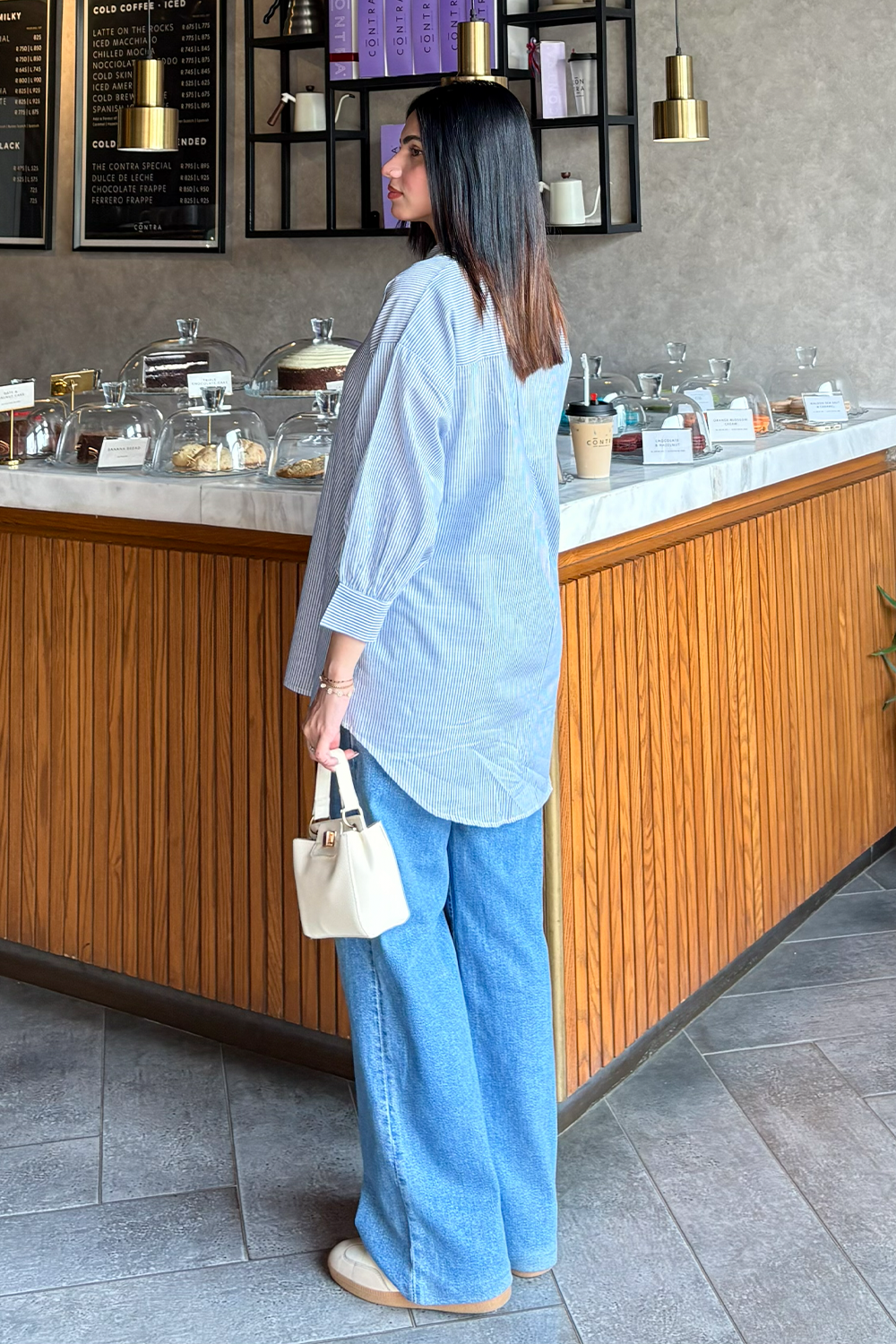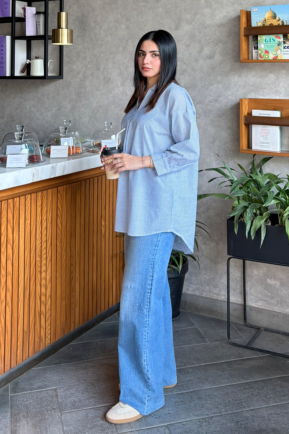 Design: A relaxed-fit shirt with a straight cut, featuring a soft collar, button-down front, and a slightly longer back hem for a modern, easy silhouette.